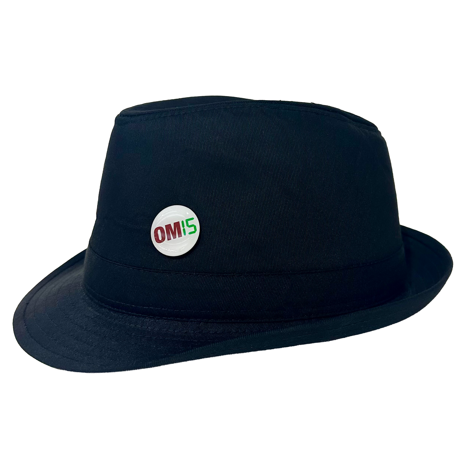 Black trilby hat with OM15 badge.